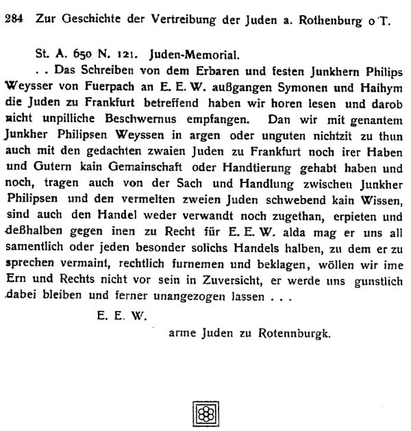 | Zur mittelalterlichen jüdischen Geschichte Rothenburgs