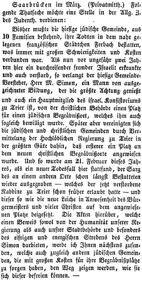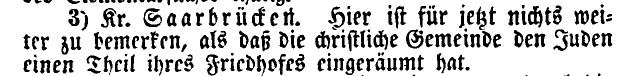 konnte ein eigener jüdischer Friedhof in Saarbrücken angelegt werden (alter