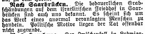 Grabschändungen auf dem israelitischen Friedhof in Saarbrücken sind auch