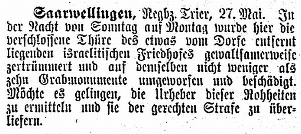 in der Zeitschrift "Der Israelit" vom 9. Juni 1884: