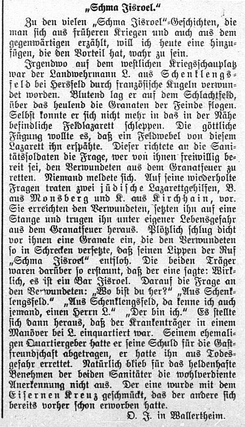 Im Ersten Weltkrieg fielen aus der jüdischen Gemeinde Unteroffizier Hermann