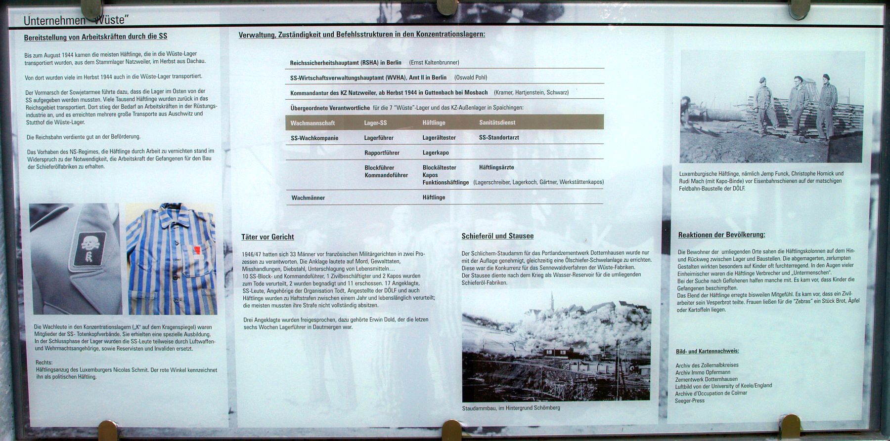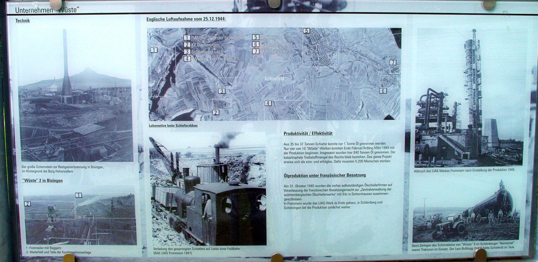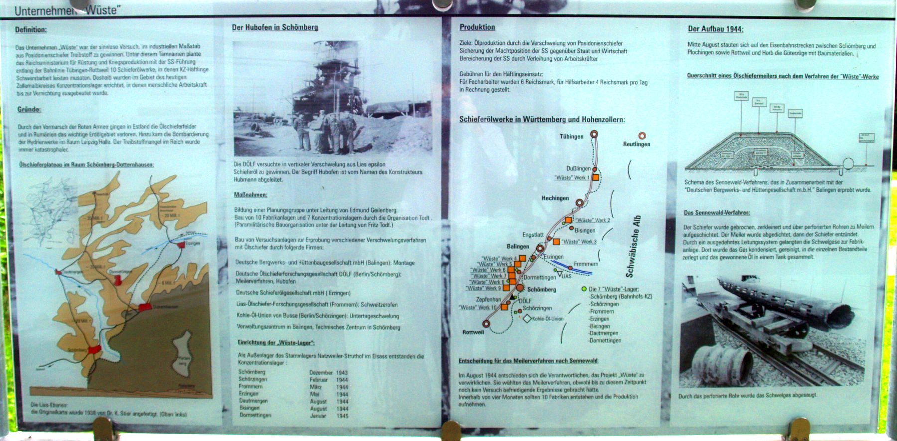 "Wüste" heran: mehr als 12.000 KZ-Häftlinge wurden in der Endphase des Zweiten Weltkriegs beim Abbau und der Verschwelung des ölhaltigen Gesteins zu Treibstoff ausgebeutet, Tausende von Männern starben aufgrund der katastrophalen Verhältnisse in den Lagern und Ölschieferwerken.