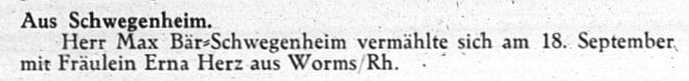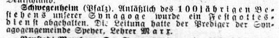 Mitteilung in "Israelitisches Familienblatt" vom 20. Dezember 1934: "Schwegenheim