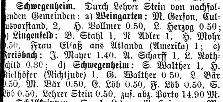 Schwegenheim. 1887 waren es 77 jüdische Einwohner in Lingenfeld unter dem