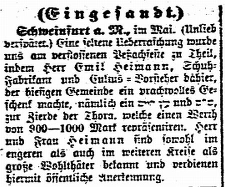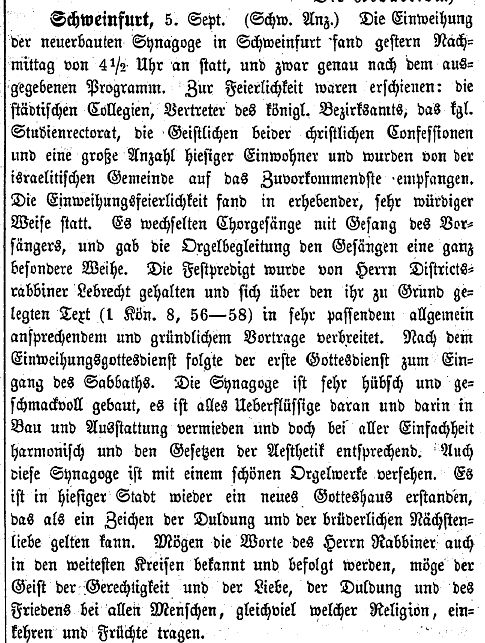 wurde Schweinfurt Sitz eines Bezirksrabbinates (Verlegung des Bezirksrabbinates Niederwerrn).