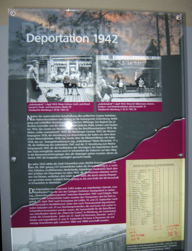 In 1933 there were 363 Jews in Schweinfurt. Many others from the surrounding