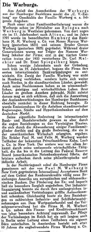 Hamburger Bankfirma macht die 'C.V.-Zeitung' zur Geschichte der Familie