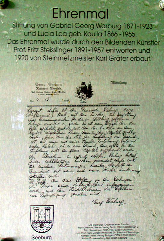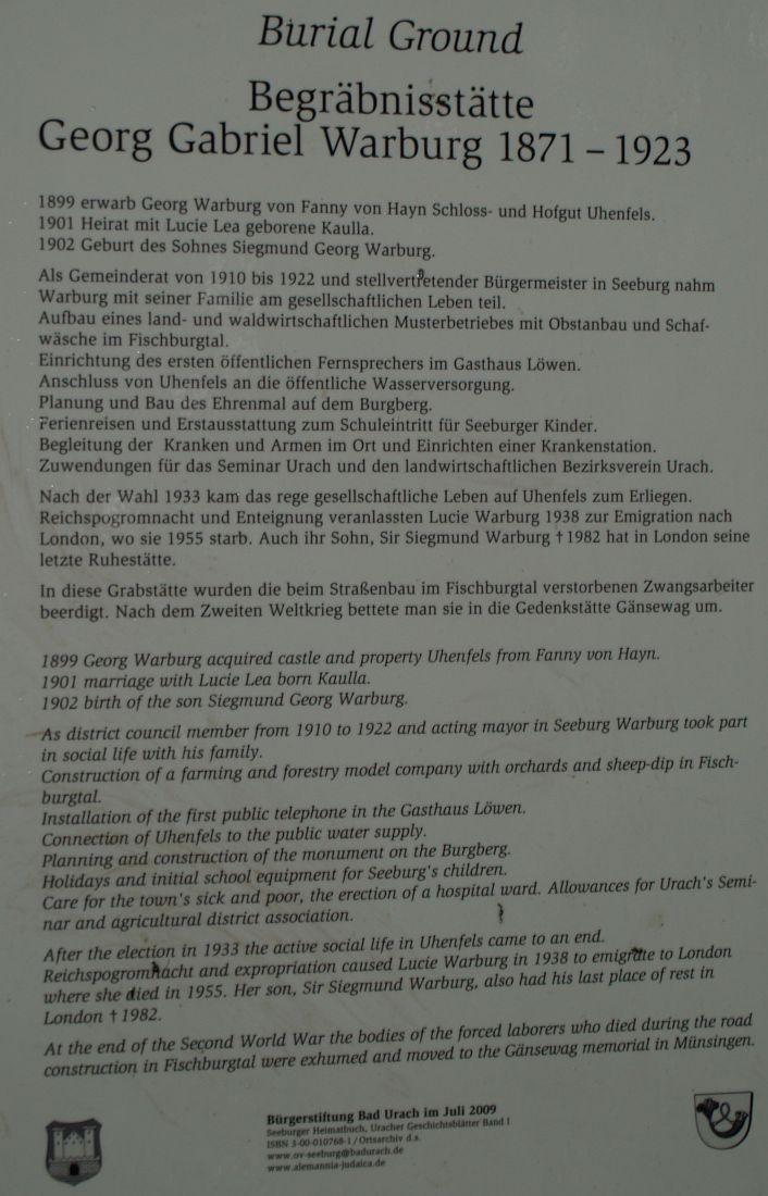 einer Grabstätte beim Hofgut Uhenfels beigesetzten Georg Gabriel Warburg.