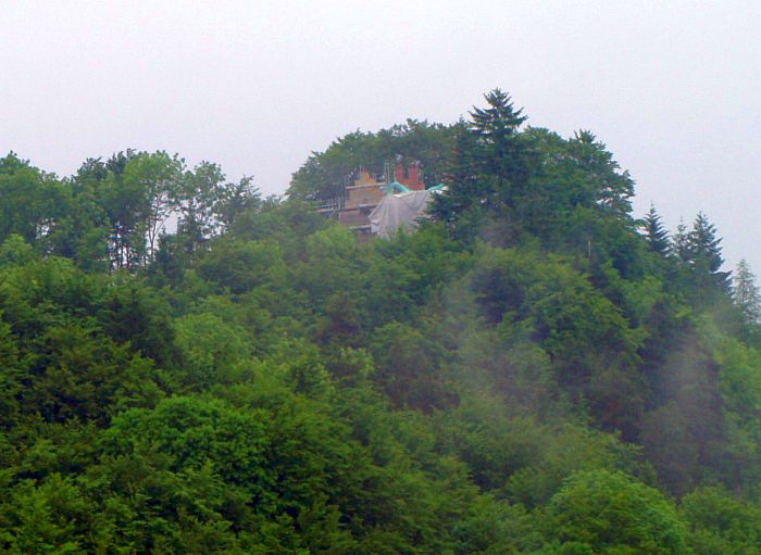 Restaurierung; viele Teile des Mauerwerks wie auch der Turm des Schlosses waren