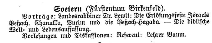 ein Vertreter der jüdischen Gemeinde Sötern (1924 Hermann Sender).