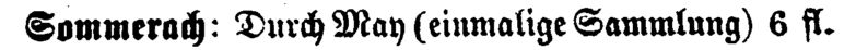 Durch May (einmalige Sammlung) 6 fl." |