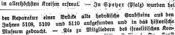 "In Speyer (Pfalz) wurden bei der Reparatur einer Brücke alte