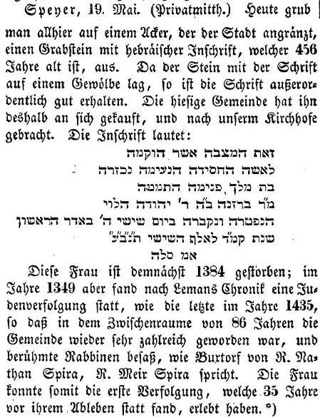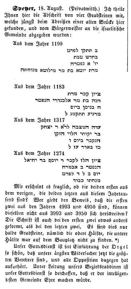 der Juden 1435 wurde der Friedhof vom Rat der Stadt Speyer konfisziert