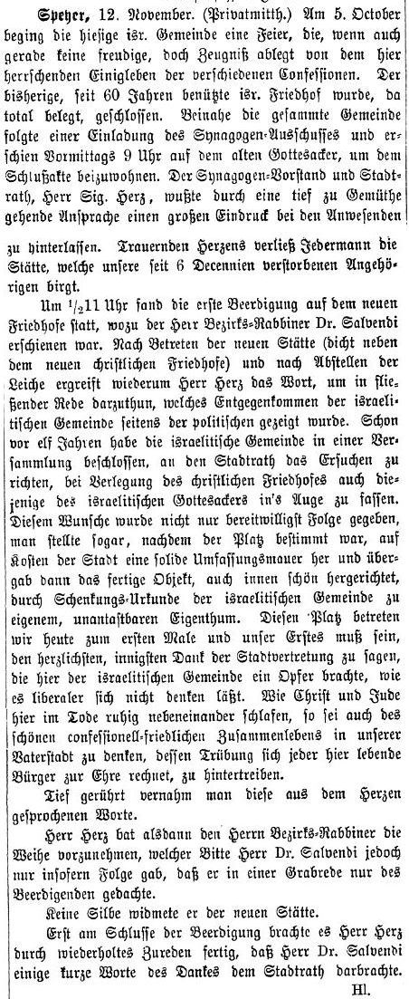 Bezirksrabbiners Dr. Salvendi aus Bad Dürkheim. Auf dem Friedhof wurden die Mitglieder der israelitischen