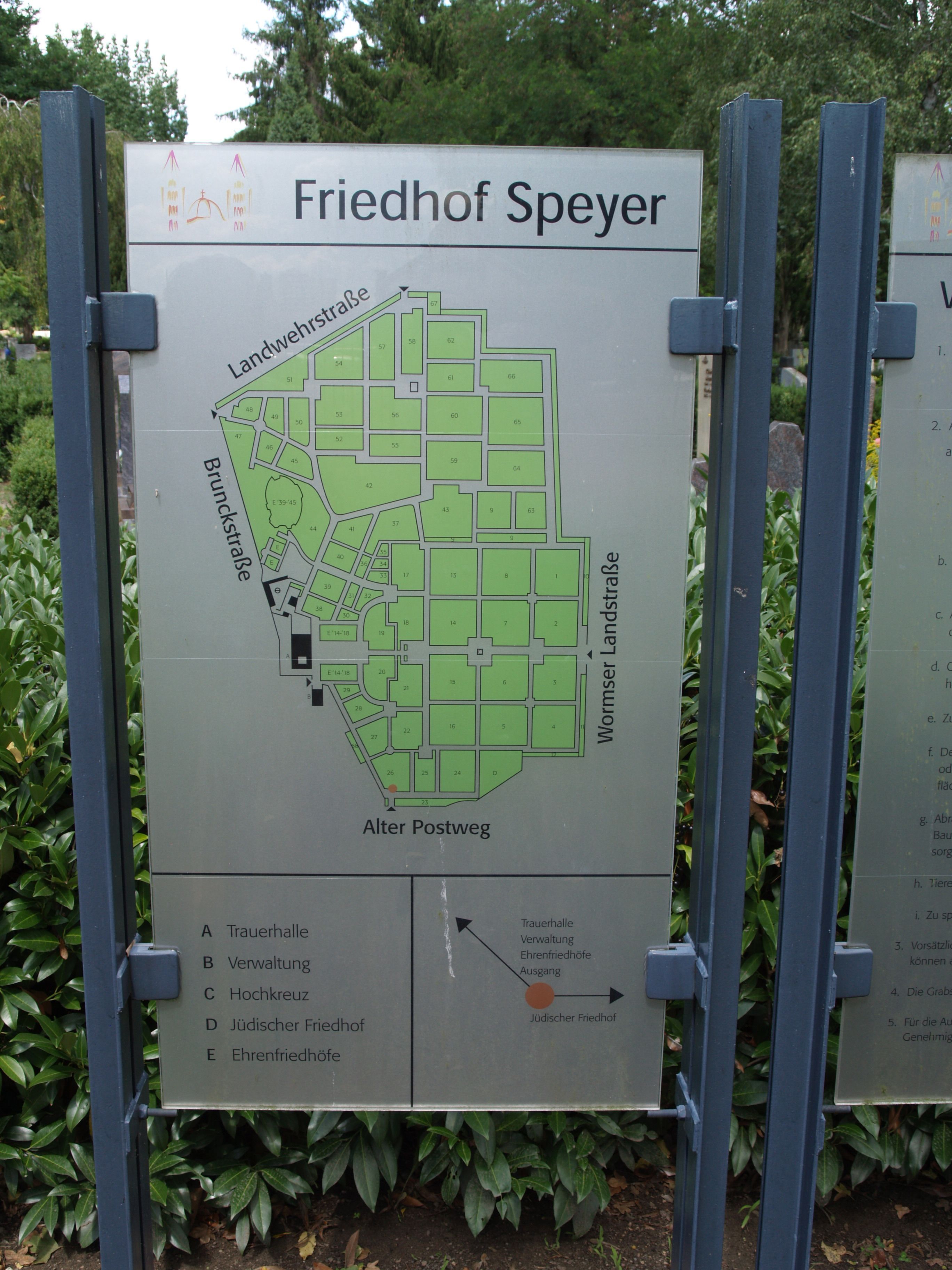 (seit 1888) in Speyer innerhalb des allgemeinen Friedhofes auf dem dortigen Stadtplan: oben anklicken und unter