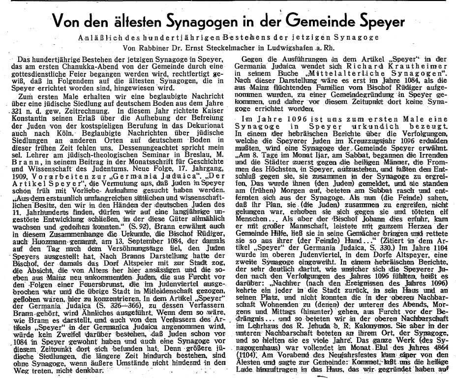 dating from before 1128. A synagogue was also consecrated in Altspeyer in 1104