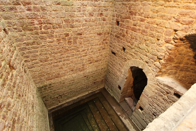 Tiefe von 7 Meter durch Treppenanlagen hinabsteigen. Die Längswände