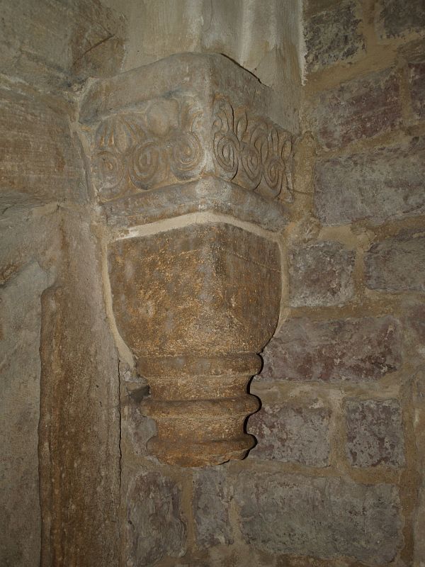 die Säulen haben teils Kapitäle mit Blättern teils Würfelkapitäle mit