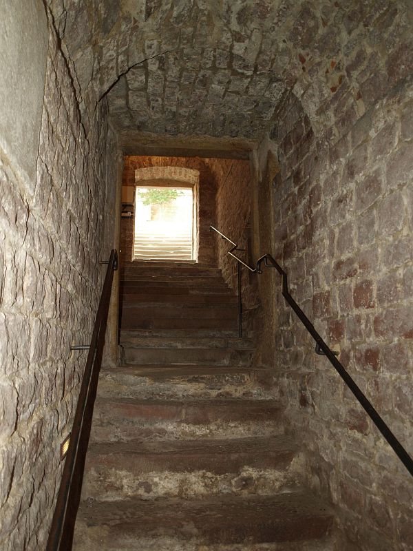 schraubenförmig ansteigenden Tonnengewölbe überdeckten Wendeltreppe. An