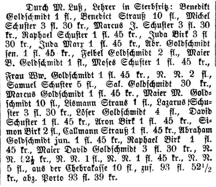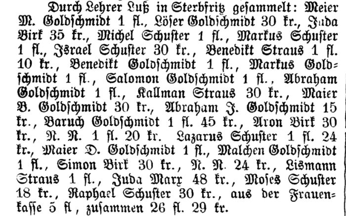 Gomb, Mendel, Eyfsig, Löb und Meyer. 1781 gab es in Sterbfritz sechs jüdische