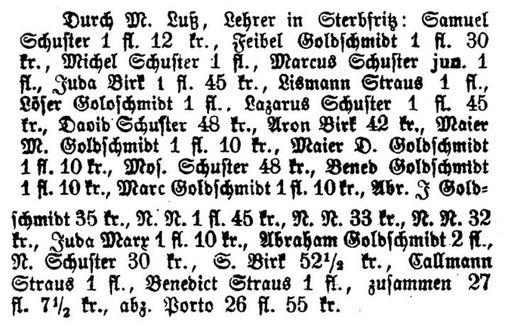 "Beiträge zur Geschichte jüdischer Sterbfritzer" dokumentiert.