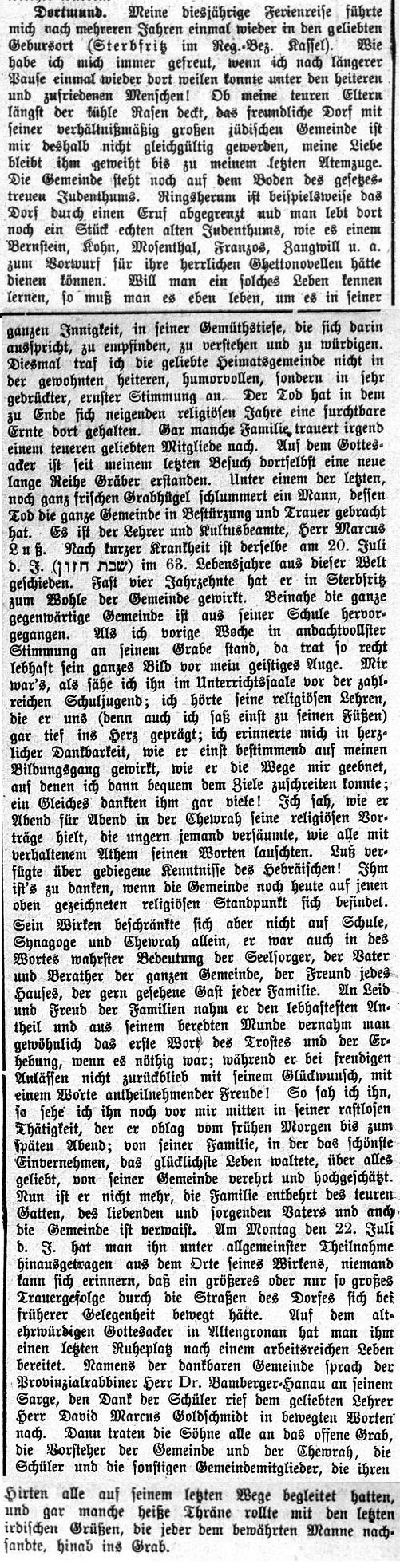 Tod 1901 war Lehrer in Sterbfritz Markus Luss (Luhs). Während seiner Zeit hatte