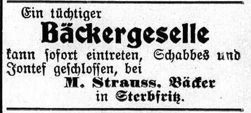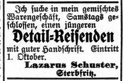 Einzelhandelsgeschäfte. Es gab zwei jüdische Bäcker, Michael Schuster betrieb