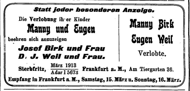 Brasilien). Andere verzogen innerhalb Deutschlands, die meisten nach Frankfurt,