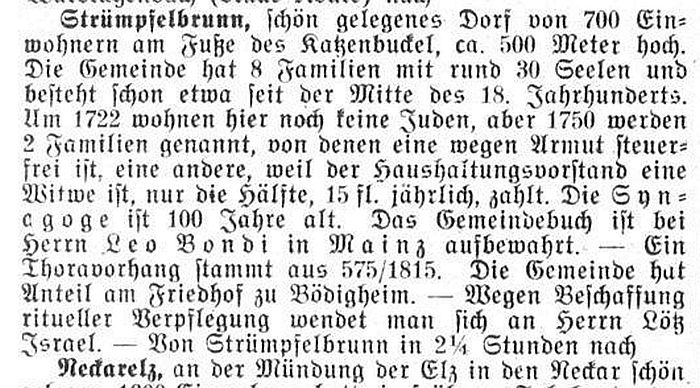 Strümpfelbrunn bestand eine jüdische Gemeinde bis 1938/40. Ihre Entstehung