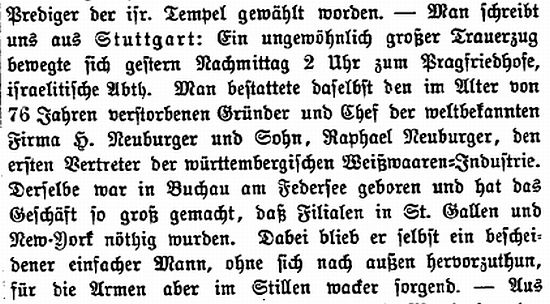 Tod des Textilfabrikanten Raphael Neuburger (1883)