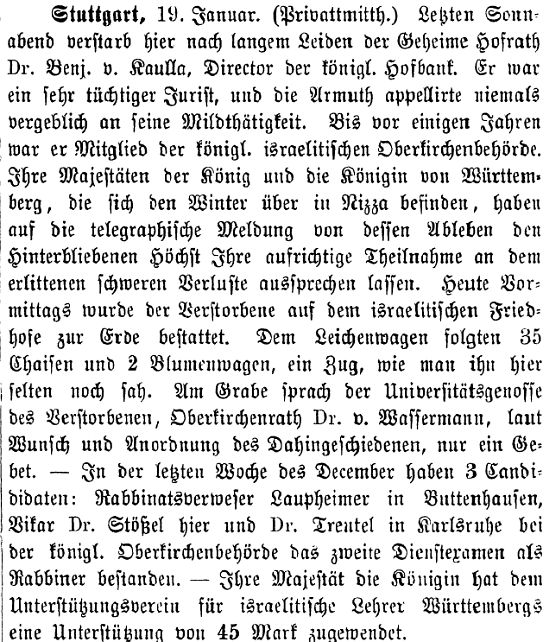 Tod von Hofbankdirektor Dr. Benjamin von Kaulla (1886)