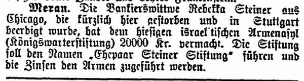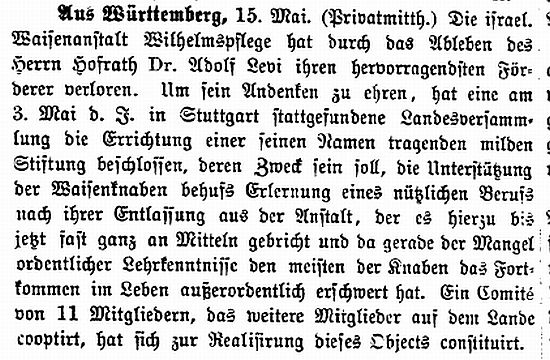 Am 25. April 1897 wurde der Israeltische Landes-Asyl- und Unterstützungs-Verein