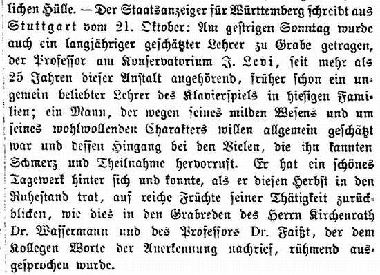 Tod von Professor am Konservatorium J. Levi (1883)