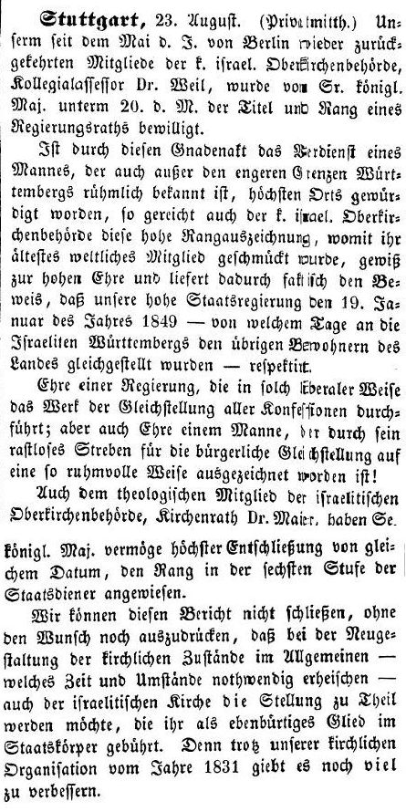 Dr. Weil wird zum Regierungsrat ernannt (1850)