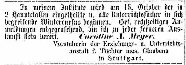 Anzeige der Erziehungs-Anstalt für Töchter von