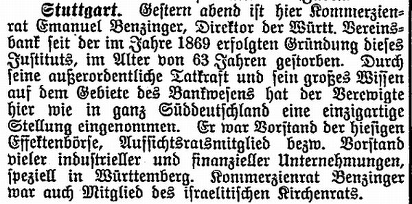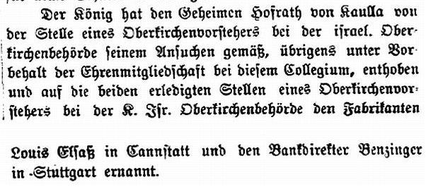 Elsaß (Cannstatt) und Bankdirektor Emanuel Benzinger werden