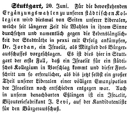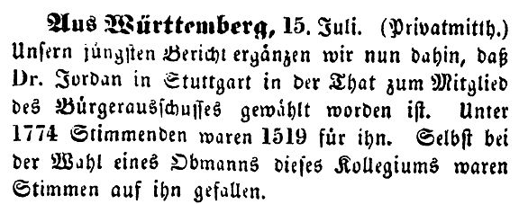 Jordan wurde in den Bürgerausschuss gewählt (1846)