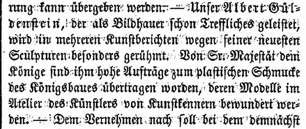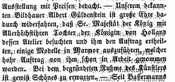 Auftrag für Bildhauer Albert Güldenstein (1856)