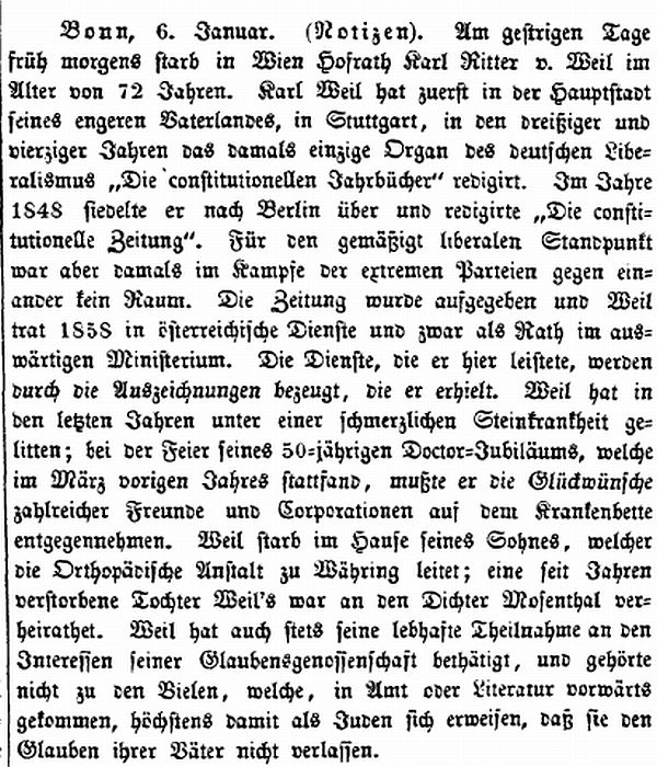 Tod von Hofrat Karl Ritter von Weil (in Wien, 1878)