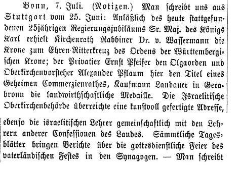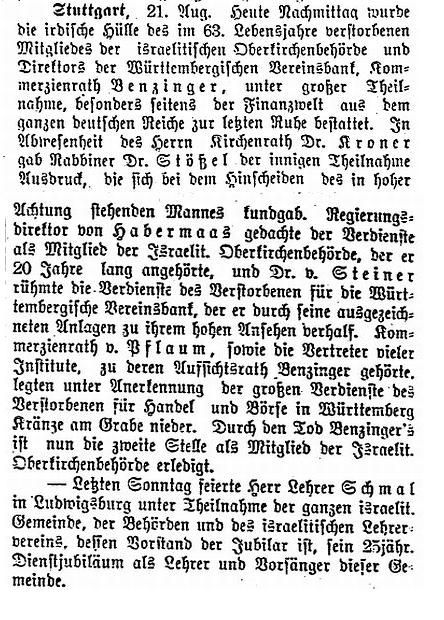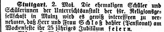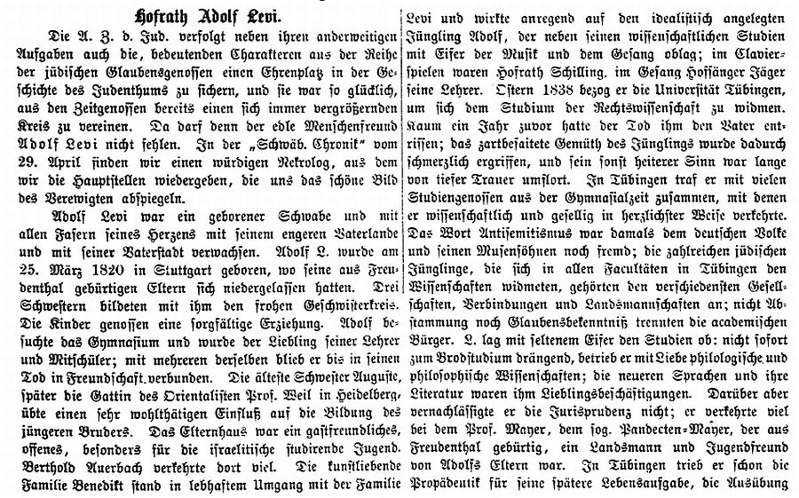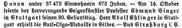 in der "Allgemeinen Zeitung des Judentums" vom 9. September 1873: |