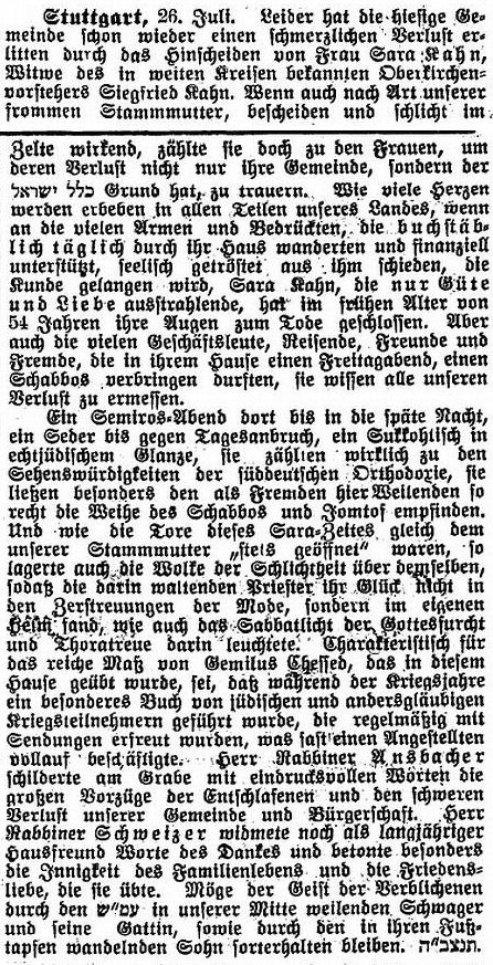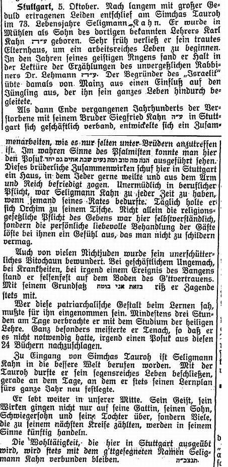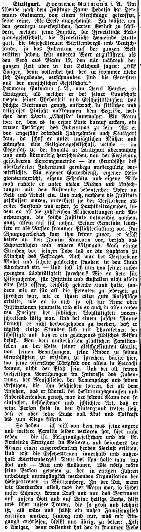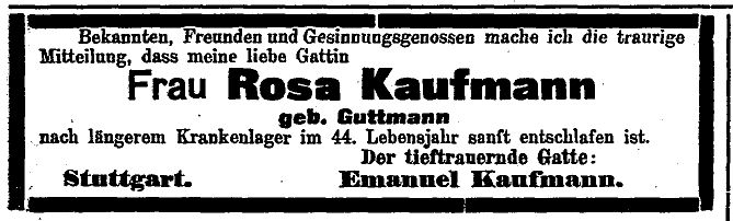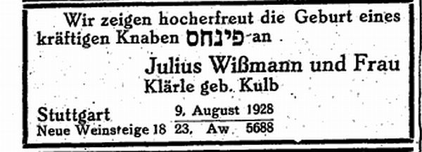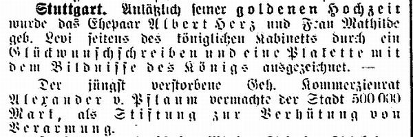 Stuttgart (geb. am 20. April 1874); er war Kaufmann und Teilhaber der Fa. Sänger & Harburger