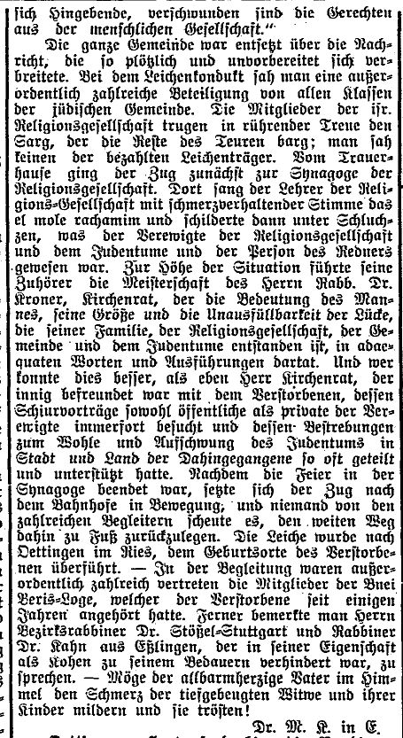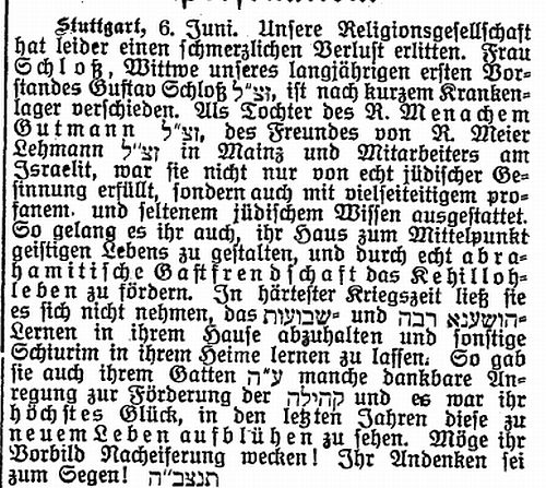 Artikel in der Zeitschrift "Der Israelit" vom 19.
