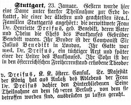 Tod von Henriette Dreifus geb. Benedikt (1882)