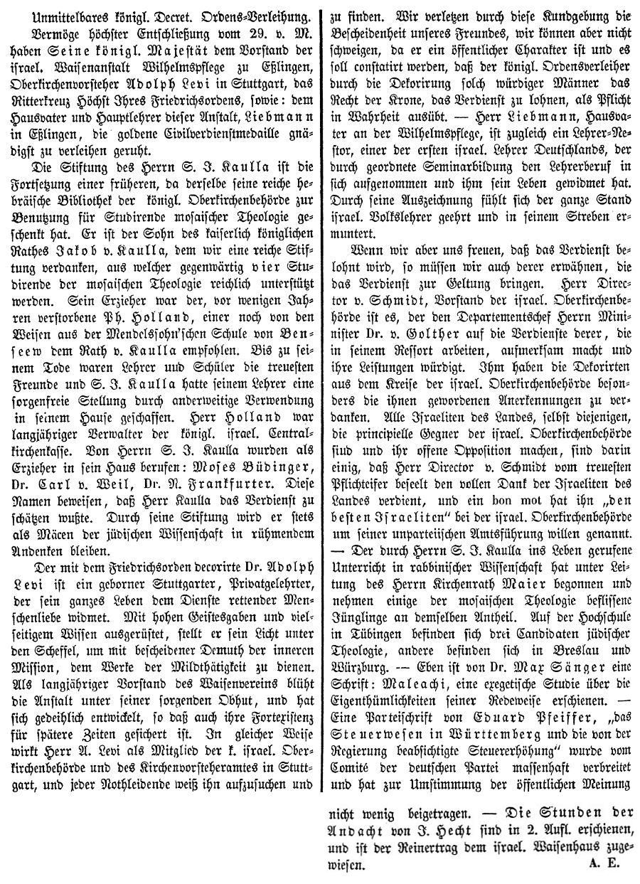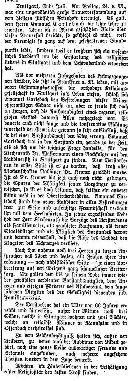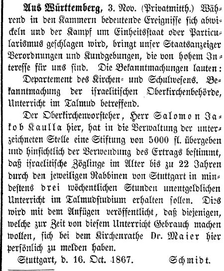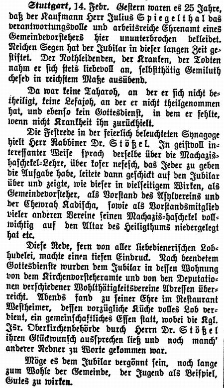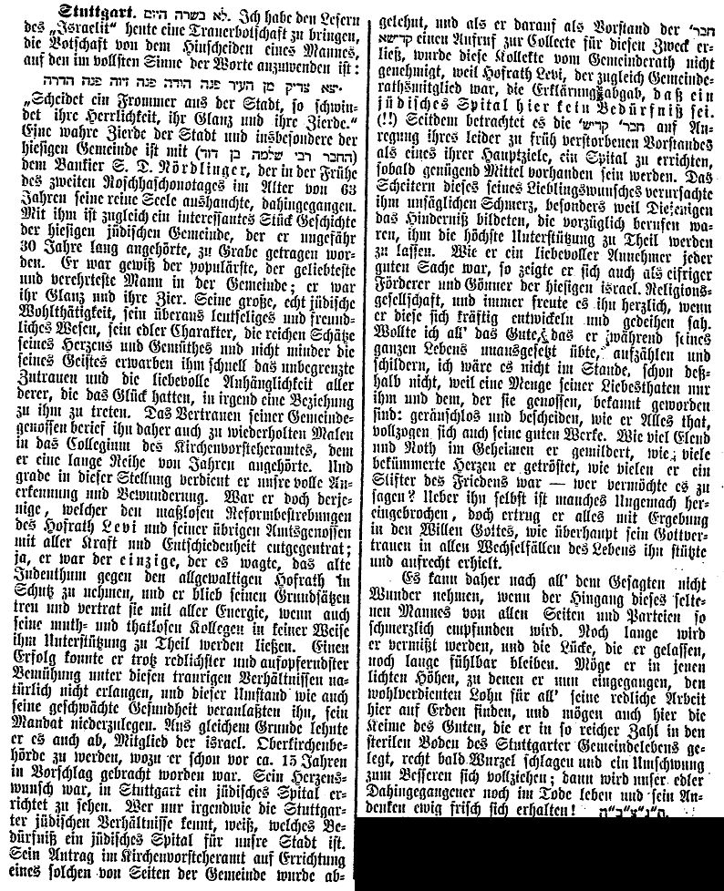 Beiträgen zur jüdischen Geschichte in Stuttgart wurden in jüdischen Periodika