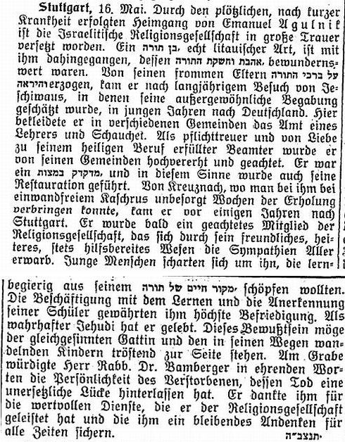 Zum Tod von Emanuel Agulnik (1932)
