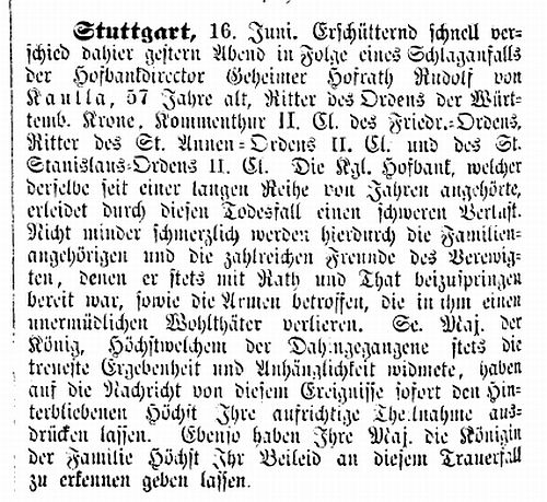 Tod von Hofbankdirektor Rudolf von Kaulla (1872)