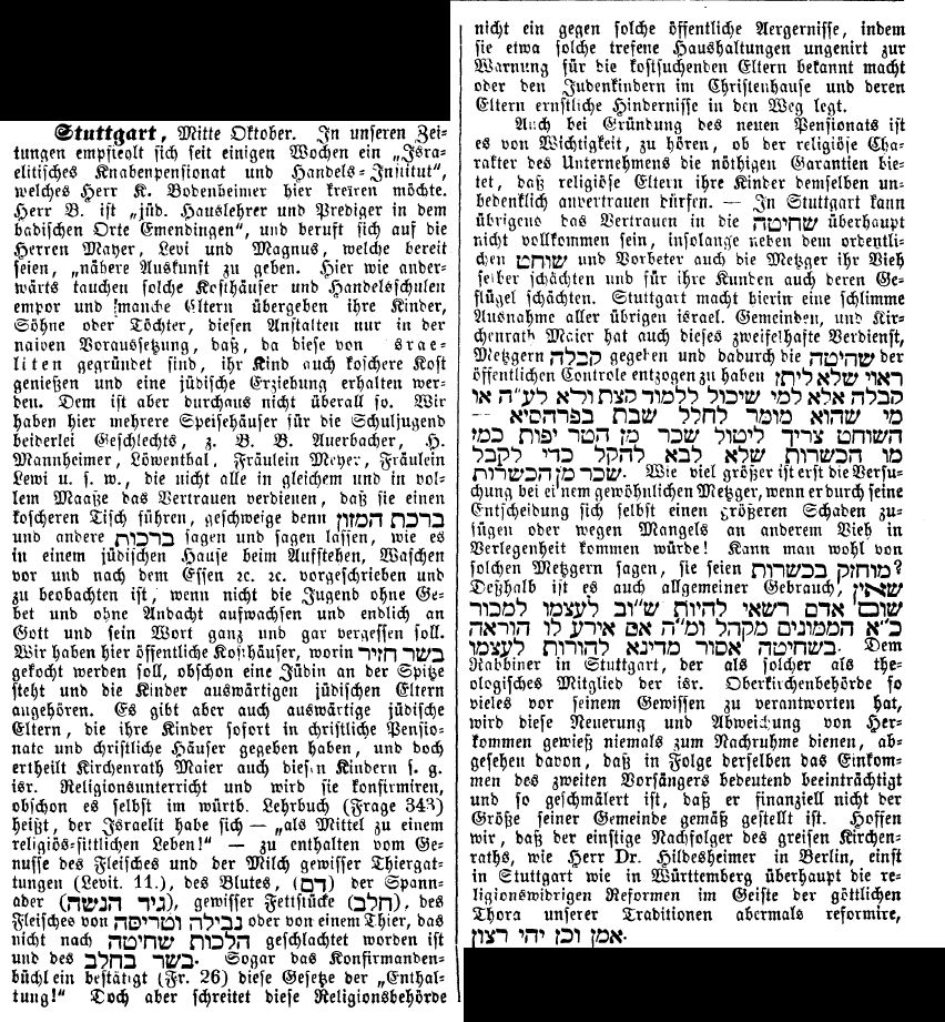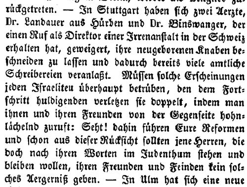 jüdische Ärzte in Stuttgart ließen ihre Söhne nicht beschneiden (1850)