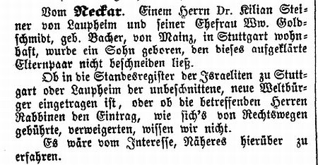 der Sohn von Dr. Kilian Steiner beschnitten? (1870)