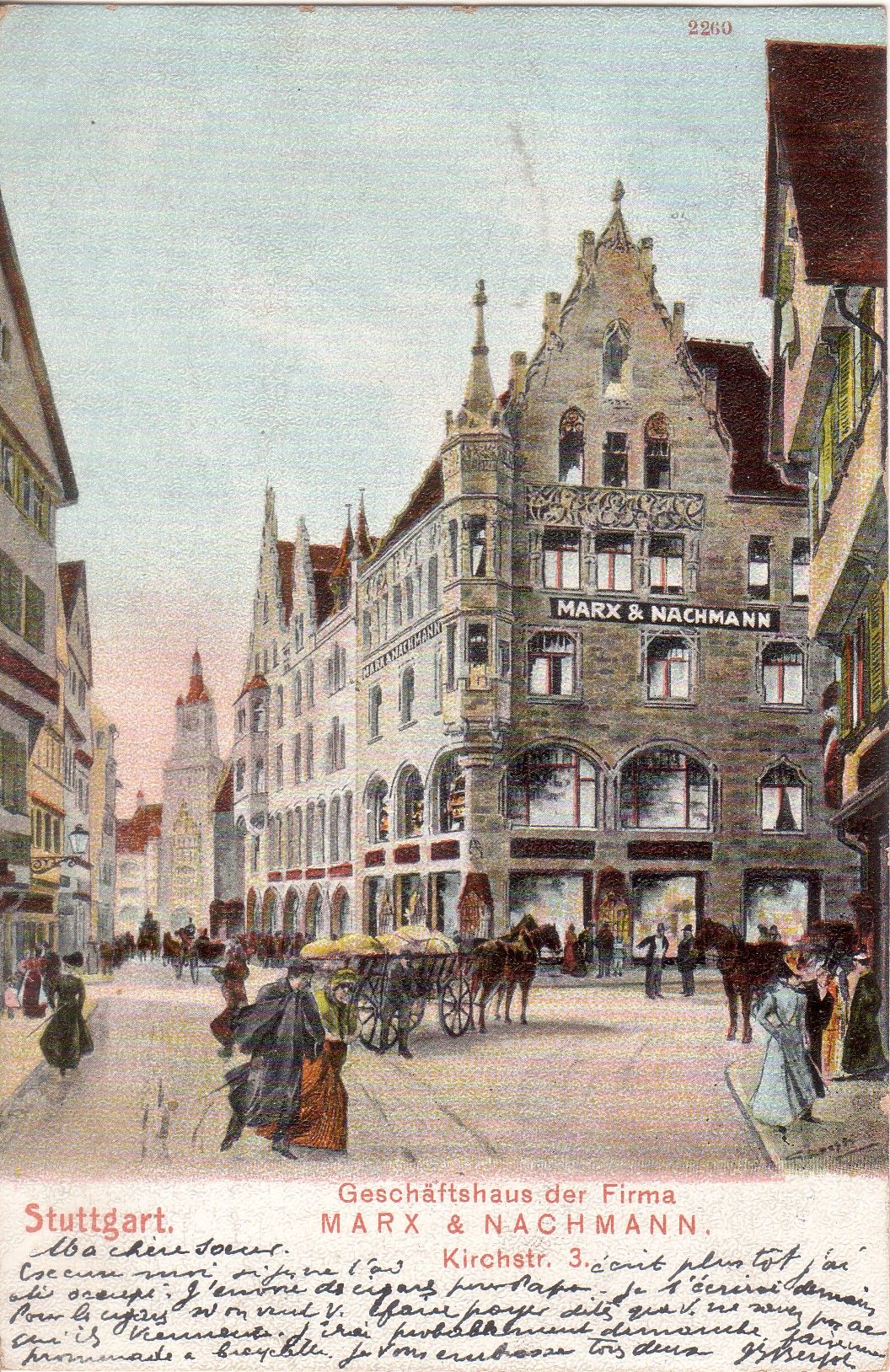 1906 von Stuttgart nach Frankreich verschickt. Das Kaufhaus der Firma Marx