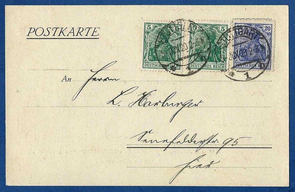 V. wurde innerhalb Stuttgart versandt an L. Harburger in der Senefelderstr. 95 am 5. Juni 1920.